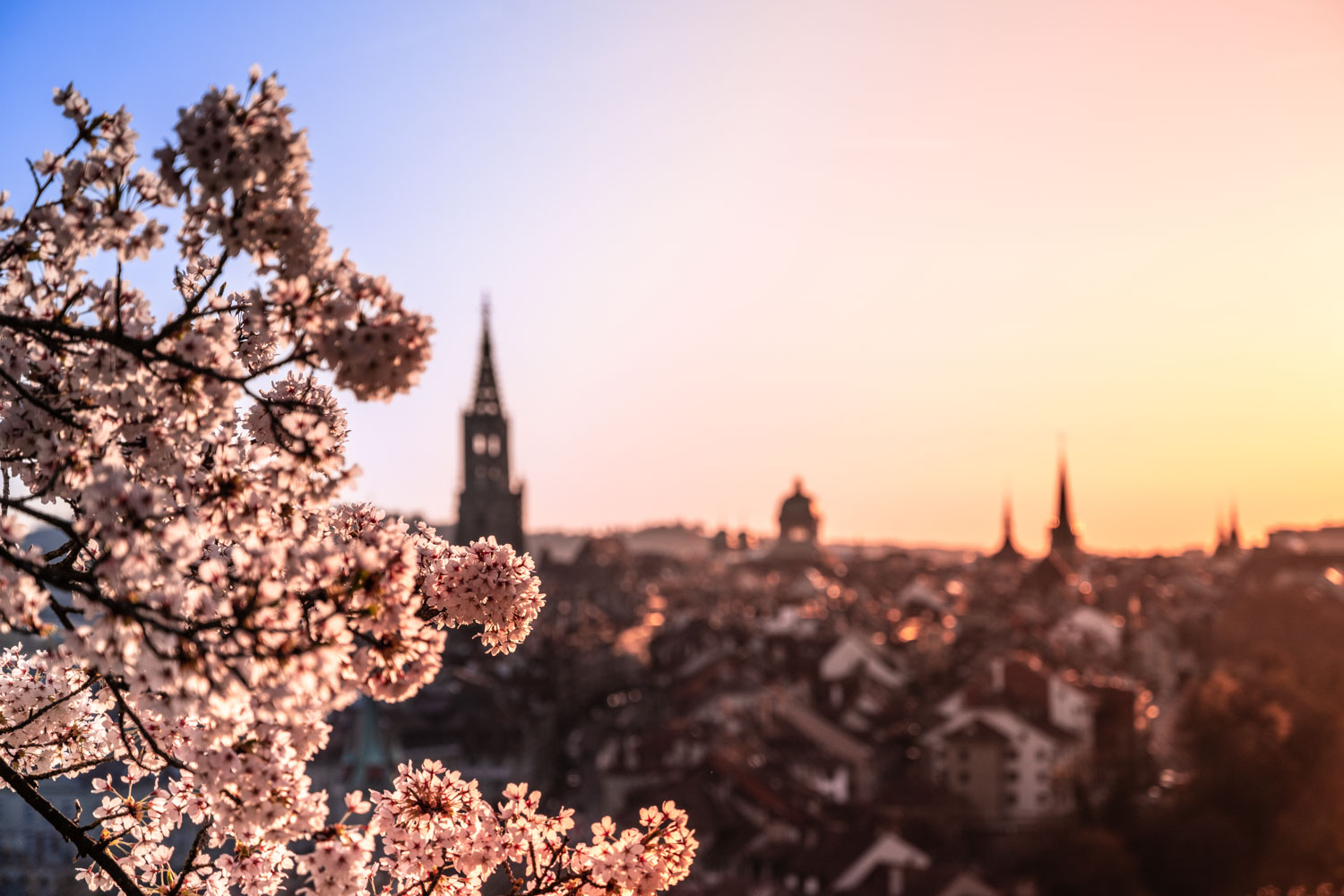 Seit Jahren stand schwirrte dieses Bild der japanischen Kirschlütenbäume im Rosengarten in Bern in meinem Kopf herum. 2025 passte es endlich. Das Wetter war perfekt. Für einen Fotografen ist zwar ein wolkenloser Himmel am Tag etwas langweilig. Wolken hätten, wie ich finde dieses Bild überladen. Der blaue Himmel war perfekt und bildete einen wunderbaren Kontrast. Es ist bei solchen Projekten an denen es tatsächlich mehrere gute Bilder gibt immer die Qual der Wahl. Was macht für mich dieses Bild speziell? Es ist wohl irgendwie der Tatsache geschuldet, dass nach Sonnenuntergang, mit Einsetzen der blauen Stunde die Menschenmassen auf einen Schlag stark abnehmen. So auch an diesem Tag. Es waren super viele Leute da, um diesen Moment, der nur wenige Tage dauert festzuhalten. Als ich dann fast alleine dastand und die blaue Stunde genoss, holte ich die Zusatzlampen, die ich dabei hatte aus der Tasche. Mit diesen leuchtete ich die Bäume aus.