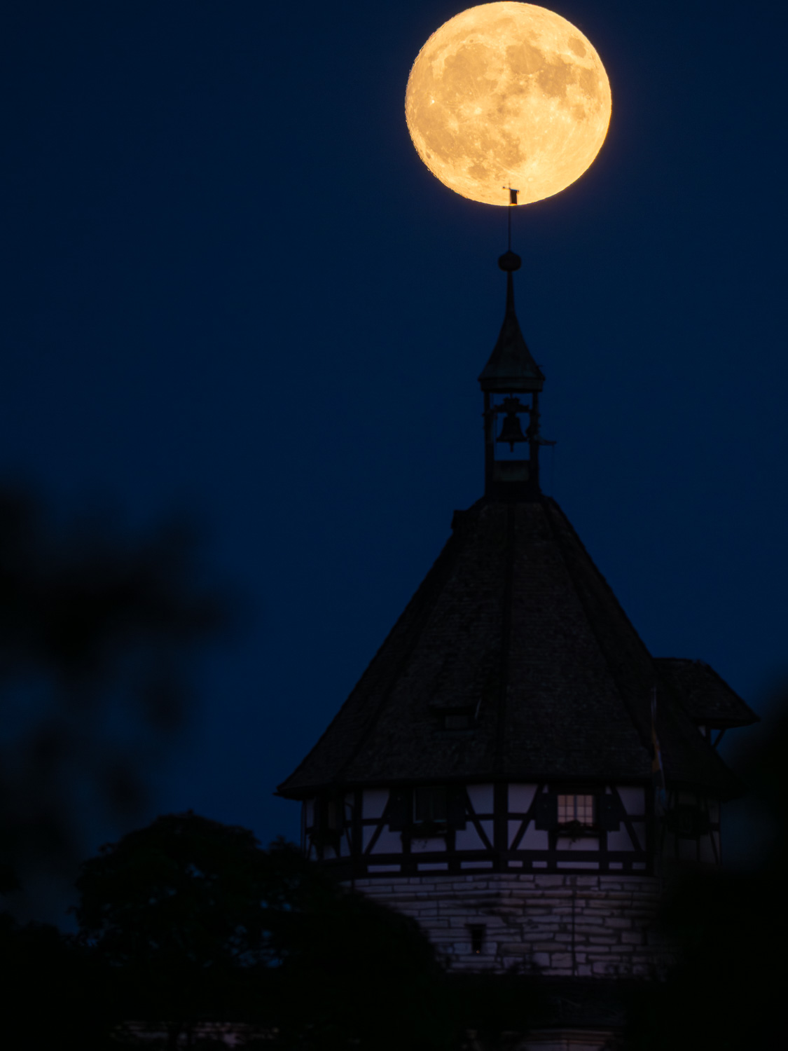 Schlicht das Wahrzeichen von Schaffhausen. Ich wusste, dass es möglich ist, den Mond genau hinter dem Munot abzulichten. Das kommt allerdings relativ selten vor. Zumal es sich um einen Vollmond handeln sollte. An diesem Tag passte es. Ich gebe zu, es war auch ein bisschen dem Zufall geschuldet. Eine halbe Stunde zuvor war ich noch ganz woanders. Doch der geplante Spot hat mich überhaupt nicht überzeugt. Als fuhr ich schnell in die Stadt zurück. Das Zeitfenster für einen solchen Shot ist sehr kurz. Man glaubt manchmal gar nicht wie schnell der Mond "wandert". Dazu kommt das Einstellen und Fokussieren der Kamera. Bei einem Superteleobjektiv mit wenig vorhandenem Licht wird der Schwierigkeitsgrad noch etwas erhöht. Für mich das "i"-Tüpfchen des Bildes ist das Fenster mit dem Kunstlicht. Die Magie der blauen Stunde ist es, dass das Mondlicht und solche Kunstlichtquellen für einen kleinen Moment fast gleich sind. Transparenz: Der Mond befand sind tatsächlich genau an dieser Stelle. Ich habe ihn aber, um die Wirkung etwas zu verstärken, etwas vergrössert. Ich mache solche "Eingriffe" äusserst selten.