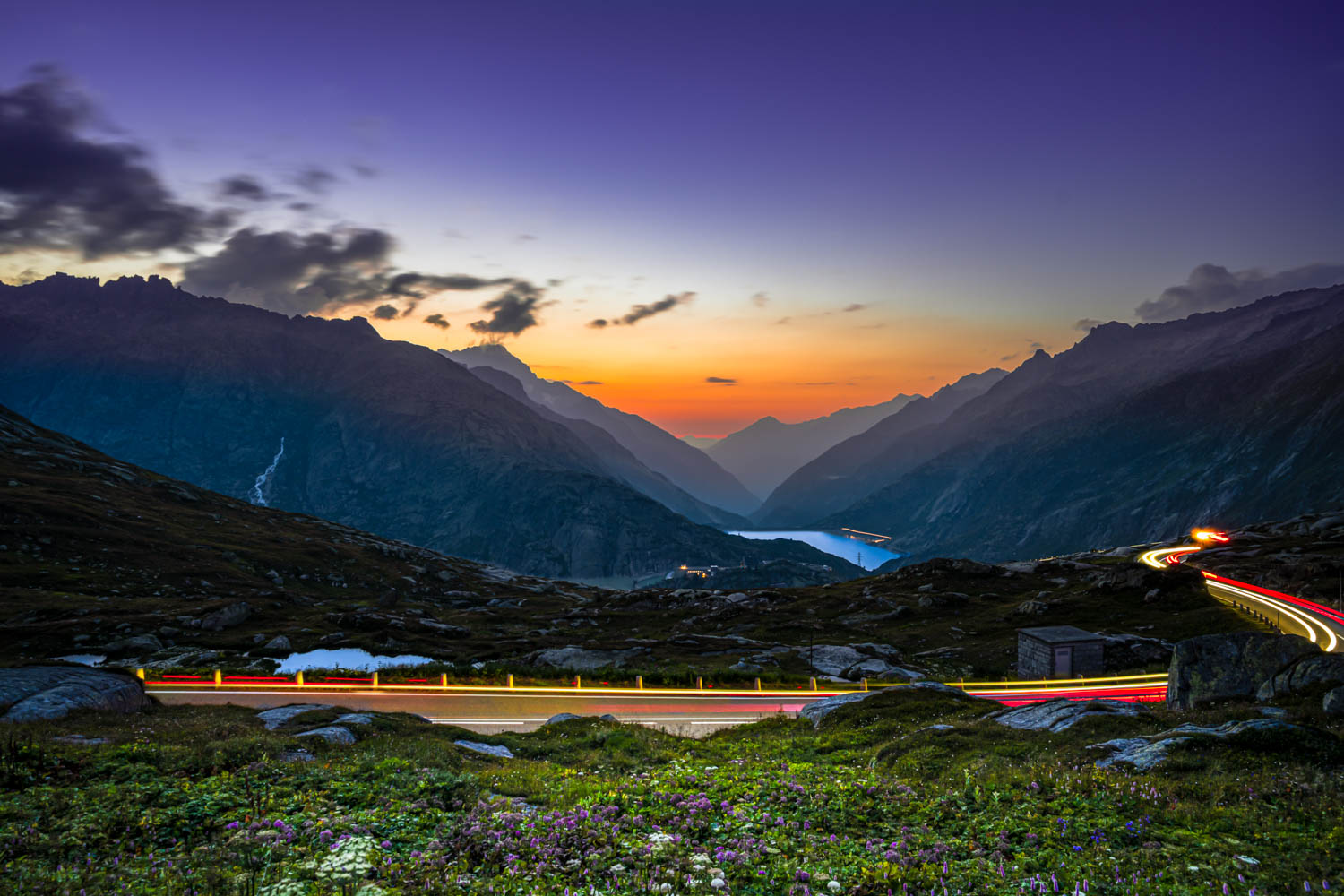 Ebenfalls ein Ort, den ich schon lange aufsuchen wollte. Der vor allem bei den Indern sehr beliebte Oschinensee oberhalb von Kandersteg. Um etwas zu "scouten" wanderte ich den recht steilen Weg am Tag hinauf. Gegen Abend dann der zweite Aufstieg. Oben angekommen machte mich der Ranger bereits darauf aufmerksam, dass hier übernachten verboten sei. Ich wolle nur fotografieren, entgegnete ich ihm. Wie so oft in solchen Regionen lässt sich das Wetter kaum richtig planen. Von der einen auf die andere Minute können sich Wolkendecken bilden und auch auflösen. Geplant war erst eine Spiegelung im See. Auf dem Plan stand ebenfalls dass ich in der Nacht Teile der Milchstrasse ablichten könnte, sofern sich die Wolken auflösen würden. Die Stimmung dieses Bildes, als für einen kurzen Moment die Sonne den See mit einem leichten goldschimmernden Licht überzog hat mich dann am meisten überzeugt. Den steilen Rückweg in absoluter Dunkelheit habe ich dann gegen 00:30 Uhr angetreten.