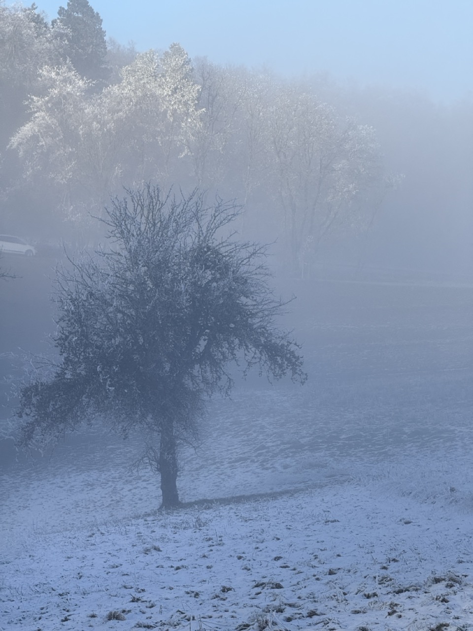 Manchmal muss ein Plan geändert werden. Die Nebelgrenze wurde zwar recht gut getroffen. Nach einigem herumlaufen, Winkel suchen und ausprobieren entschied ich mich dann für eine kühle Version anstatt der warmen. Wie so oft war ich zeitlich eher knapp dran. Entstanden ist das Bild am Rande des Kantons Schaffhausen. Irgendwo in der Gegend des Hagenturms. In diesem Bild geht es eher um den Blickwinkel. Es lässt kleine Details gross erscheinen.