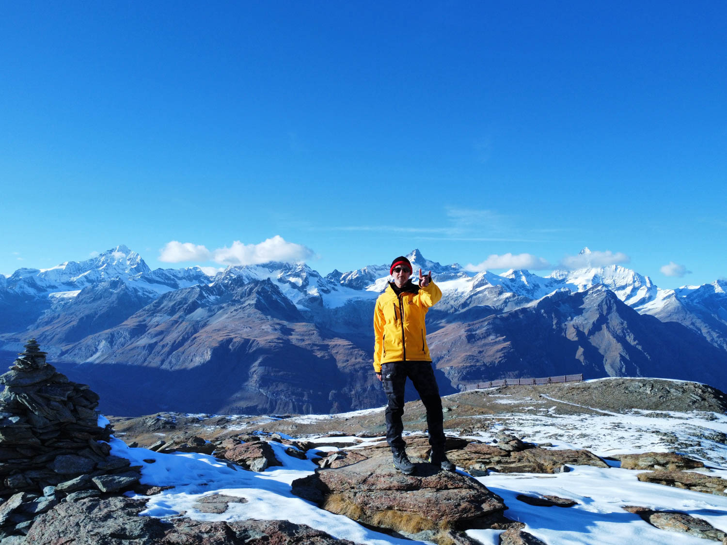 Ja ich gebe es zu. Es war nur ein festgehaltenes Nebenprodukt. Doch je länger ich das Bild anschaute, desto mehr versank ich darin. Im Nachhinein versteht sich. Die Ruhe, die Majestätik (gibt es das Wort?), die Wärme die dieses Bild trotz der Kälte ausstrahlt. Die Sanftmütigkeit und gleichzeitig die immense Kraft. Die Sonne legt sich langsam zur Ruhe. In etwa 20 Minuten wird es hier dunkel sein. Doch jetzt stehe ich vor ihnen: Liskamm, Castor, Pollux. Magie pur.